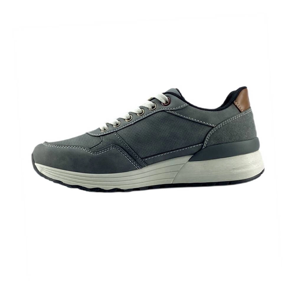 Fabricado en piel ecológica y material textil en color gris. El calzado proporciona un discreto aumento de hasta 7 cm, gracias al cual conseguirás una figura esbelta. Mejorarás tu bienestar y cuidarás la salud de tu columna. Recomendado como calzado de diario.
