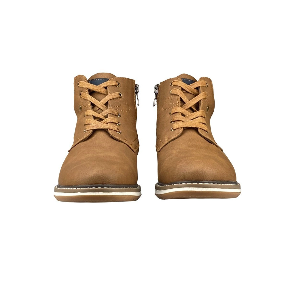 Cómodos zapatos con alzas y cordones, confeccionados en piel sintética marrón claro.