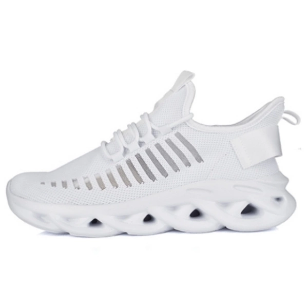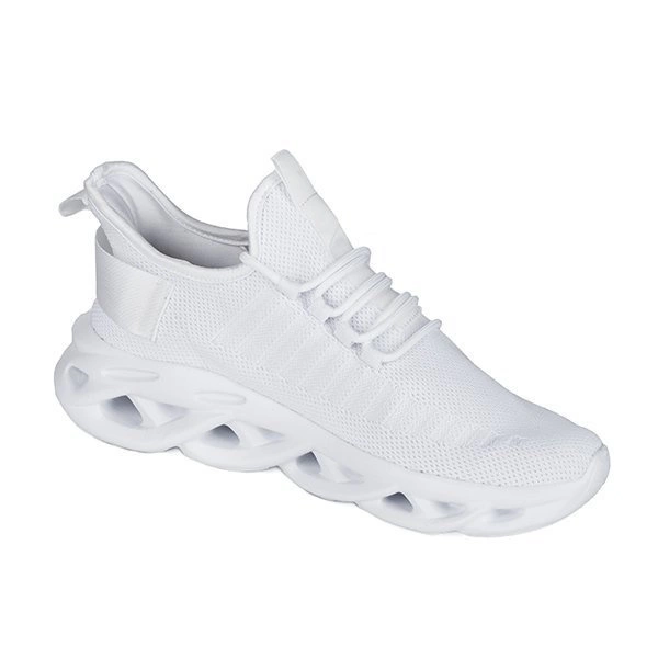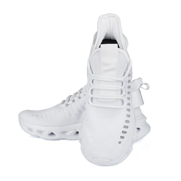 Zapato con alzas deportivas BARTOLOMEO fabricado en material blanco, colocado sobre suela blanca.